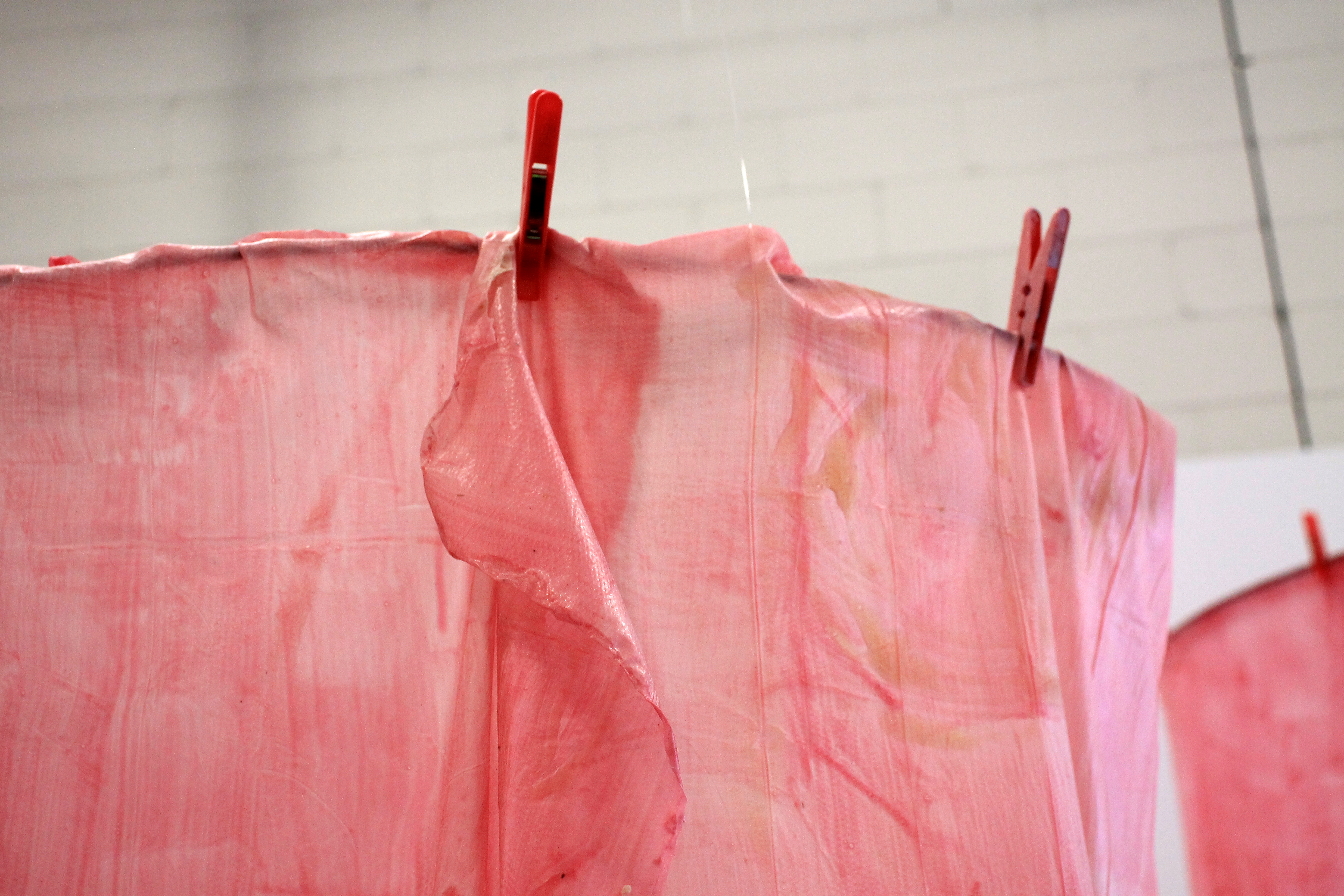 Latex, steel bar, clothes pegs