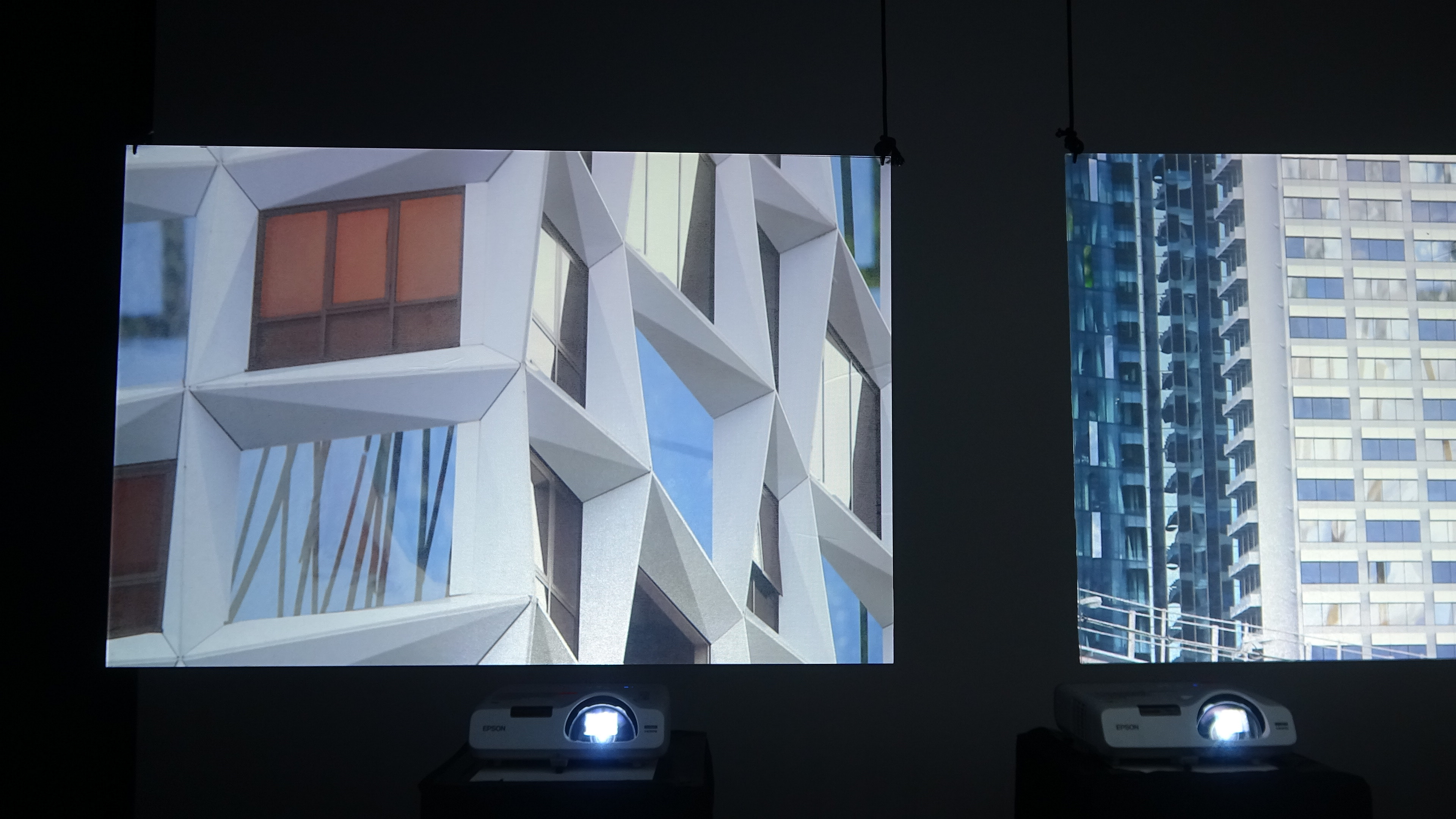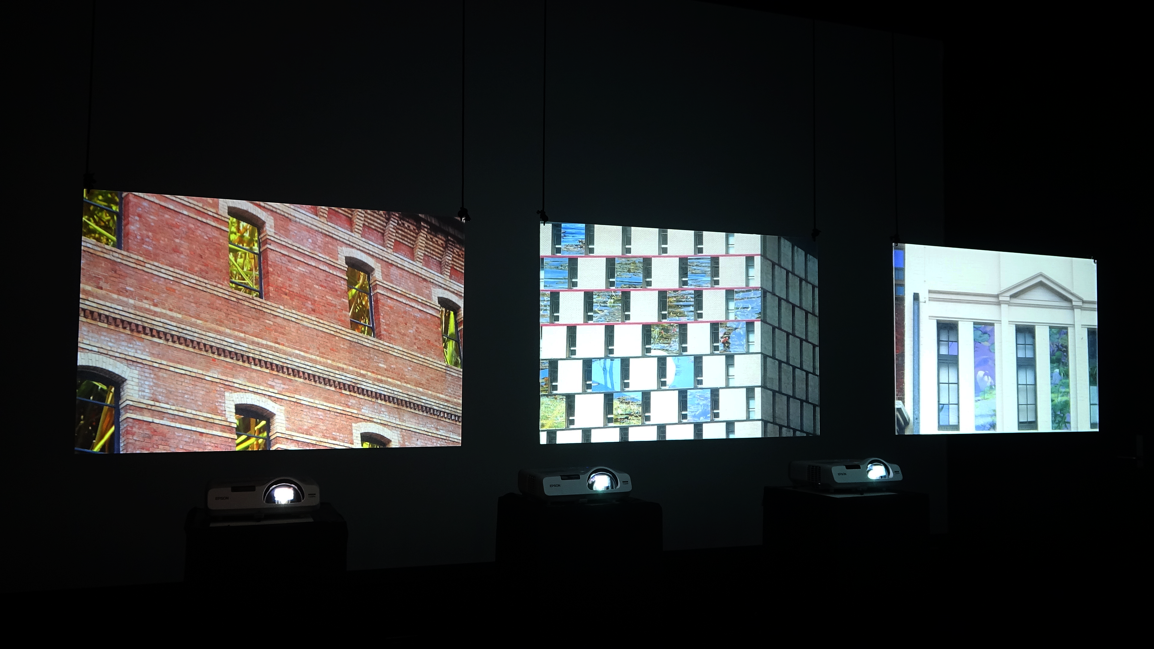 Three-channel video projection on semi-transparent acrylic panels